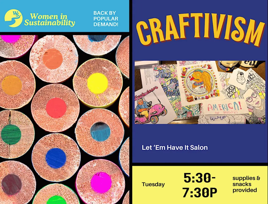 Let Em Have It Salon 490 East 20th Avenue, Denver, CO, United StatesCrafting + Activism. Come create, color, write postcards to politicians, vent, laugh, or quietly connect! No supplies or skill needed! It’s back! (by popular demand). Join Women in Sustainability + Let Em Have It Salon for another night of Craftivism—the joyful, slightly unhinged intersection of crafting + activism + community therapy. This time we’re leaning all the […]